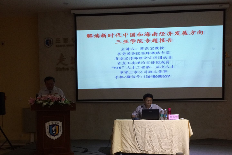 2018年5月3日,必赢集团网站邀请国务院特殊津贴专家、省委宣传部理论宣讲团成员蔡东宏教授为全校师生开展了一场题为“解读新时代中国和海南经济发展方向”的讲座。