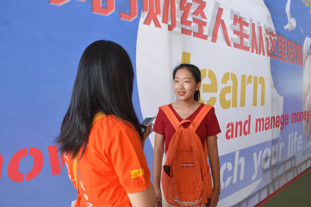 接着,财经通讯社又对经金专业的张凯佳同学进行了简单的采访。当提到学校环境时,张同学兴奋的说看到了在北方看不到的椰子树,学院遍地都是绿色,让人印象深刻。张同学认为大学和高中不同的是,大学是一个展示自我的平台,更加注重自我综合素质发展,而高中注重学习。张同学希望自己能够在未来四年拿到奖学金,通过四六级考试。希望各位新生都能和张同学一样努力学习,充满自信。
