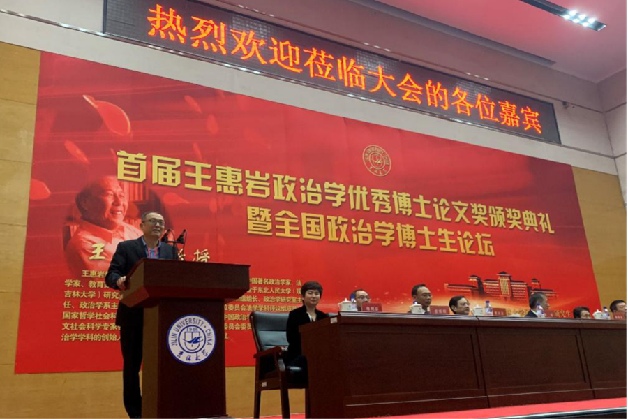 大会的主要发言人与颁奖嘉宾包括,国务院学位委员会政治学学科评议组召集人、教育部“长江学者”特聘教授徐勇,全国政治学教育指导委员会副主任委员、教育部“长江学者”特聘教授朱光磊,王惠岩先生夫人脱弱女士,吉林大学党委书记杨振斌。作为王惠岩先生的学生,原中共中央政治局委员、国务院副总理刘延东同志也专门为此次颁奖典礼发来了贺信。