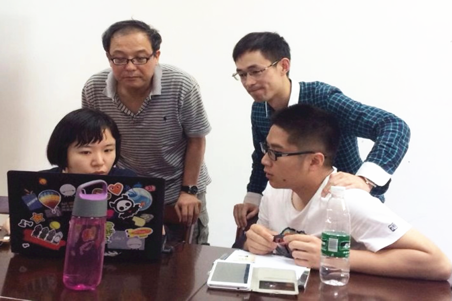 (图为张光教授与所指导研究生讨论学术,右上为其博士生游宇)