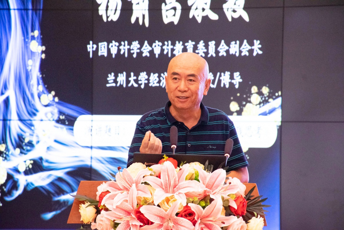 图为中国审计学会审计教育委员会副会长、兰州大学经济学院杨肃昌教授发表演讲