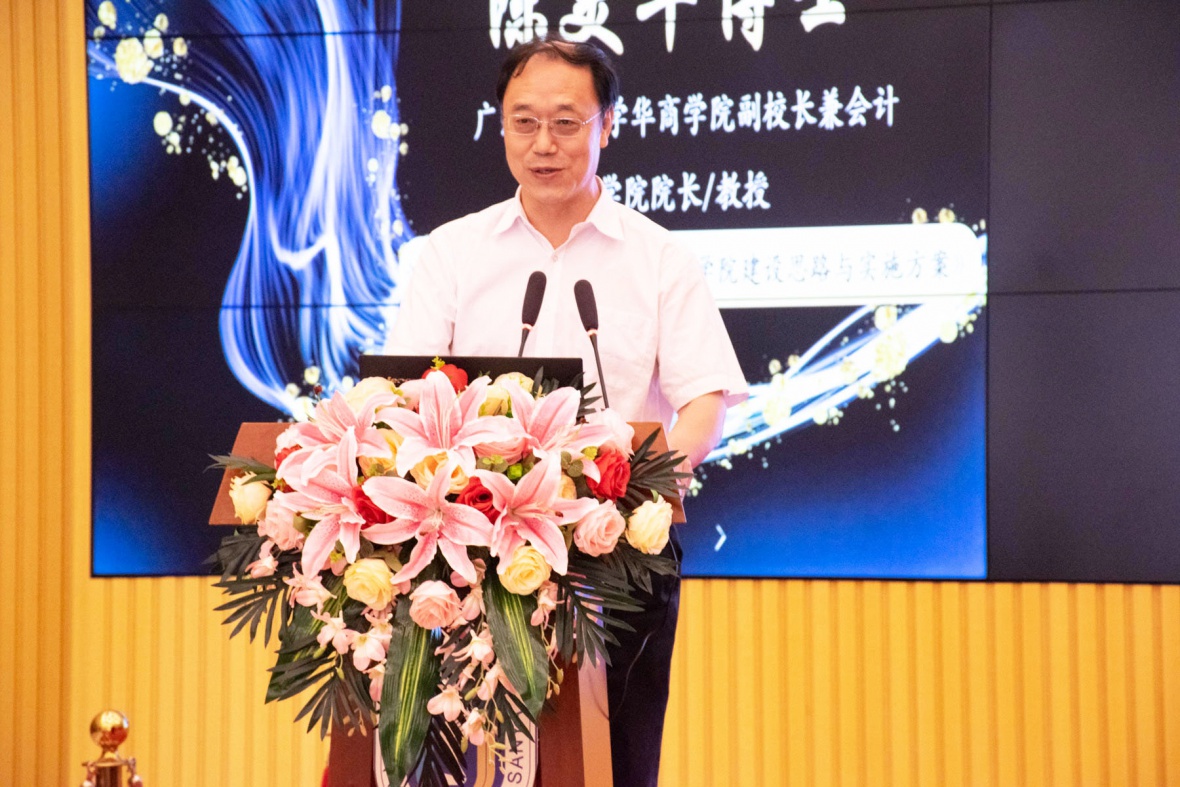 图为广东财经大学商华学院副校长兼会计学院院长陈美华教授发表演讲