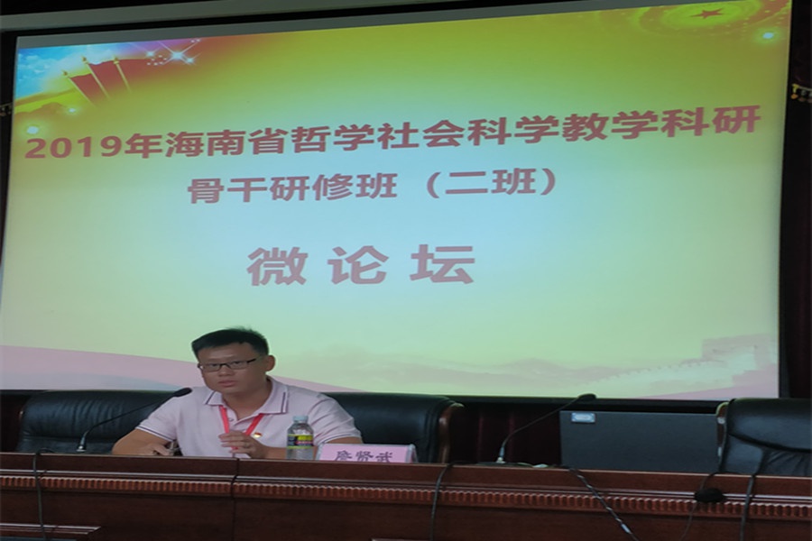 11月8-10日,学院院长助理王欣接受学校和学院的指派参加了在省委党校的培训活动。本次培训活动是2019年海南省哲学社会科学教学科研骨干研修班,培训期间王欣老师作为第三学习小组的代表进行微论坛发言。