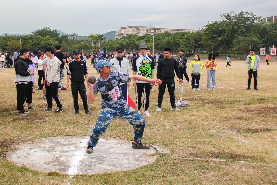 比赛开始前,选手们进行热身,慢跑,俯卧撑,拉腿,想要一展风采。比赛正式开始,唐波同学缓缓举起铅球,扭转身体,下蹲蓄力猛的推出,沉重的铅球在空中划过一道抛物线后落地。最终,经过三轮的角逐,唐波同学以8米34的成绩位列第六名。场边观看的必赢集团bwin的同学响起了掌声。