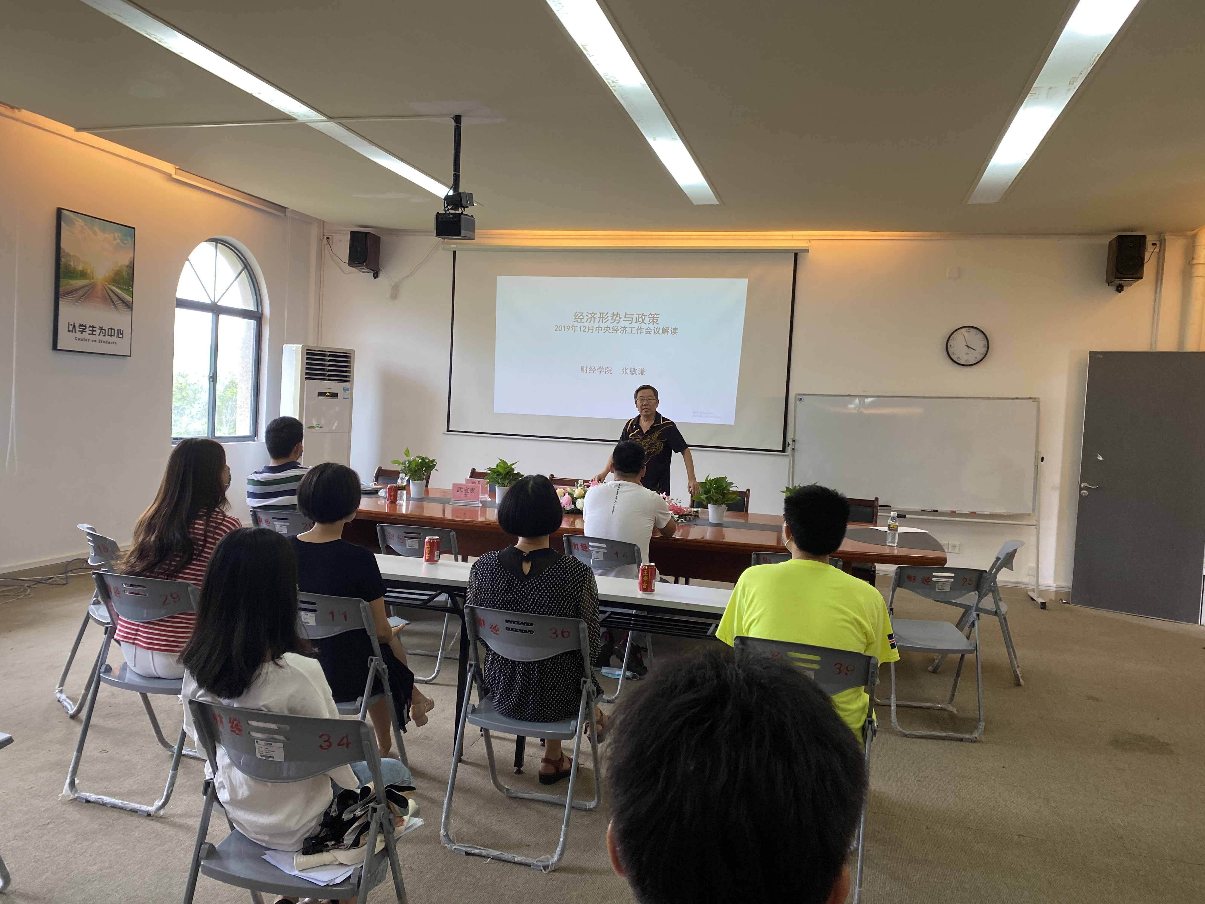 为促进学术交流,2020年6月19日下午14:30-15:30,张敏谦教授在必赢集团bwin会议室为经济与金融专业的同事作了专题学术讲座,讲座题目为《经济形势与政策——2019年12月中央经济工作会议解读》。