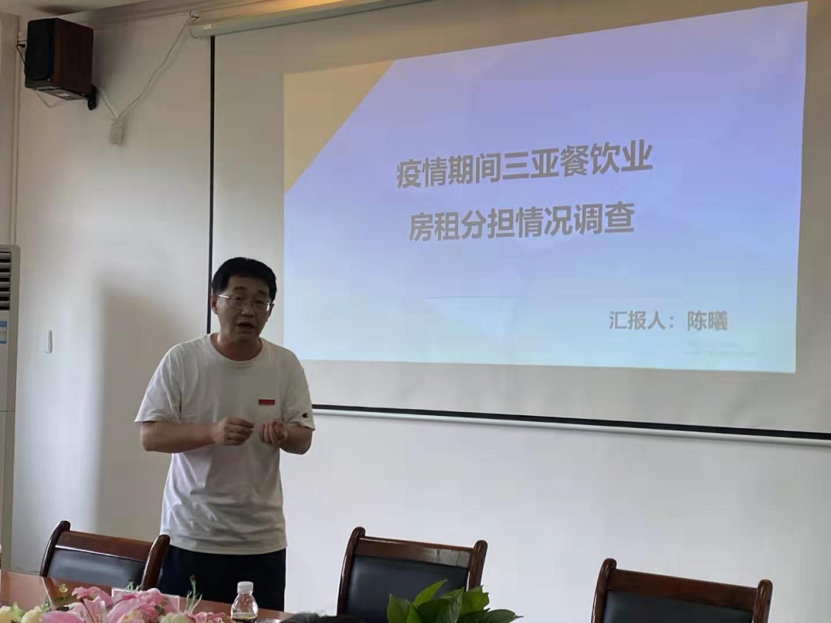 六月二十三日下午,在必赢集团bwin1号会议室,会计专业主任陈曦博士以“疫情期间三亚餐饮业房租分担情况调查”为题,向会计专业部分教师做了研究汇报。