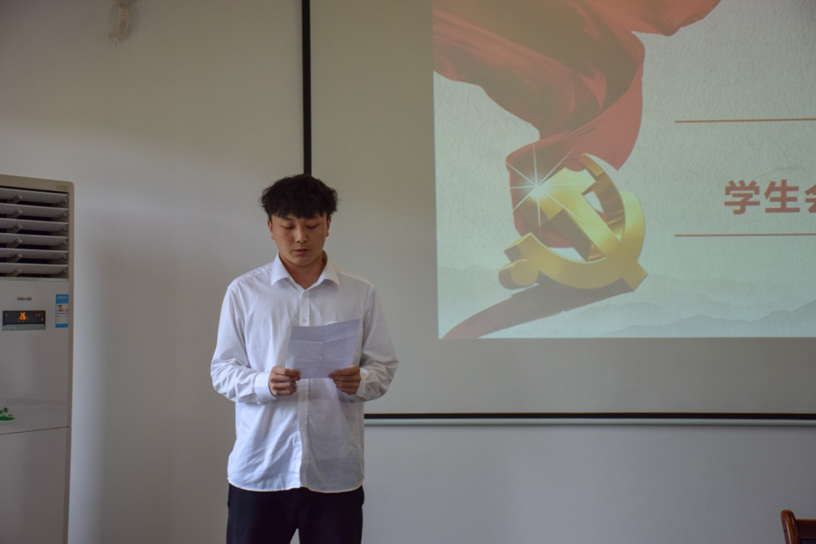 竞选会一开始,曹瑞吉书记发表讲话。曹书记首先代表学院感谢在座的同学为学院的辛勤付出,并为之后的学生组织活动提出了一些要求。随后,14位同学依次上台演讲,每名同学们共有四分钟的自我介绍时间。他们简要介绍了自己,说明自己的求职意向,讲述自己的职务经历以及未来展望。他们的演讲慷慨激昂,无不展现出对所求职务的渴望以及为学院奉献的决心,赢得了在场的老师和同学们的掌声。尽管学生组织负责人的工作繁琐,但是难以抵挡参加面试同学们的热情,他们希望自己可以在工作中,在协助老师、帮助同学的过程中,得到更好的锻炼。