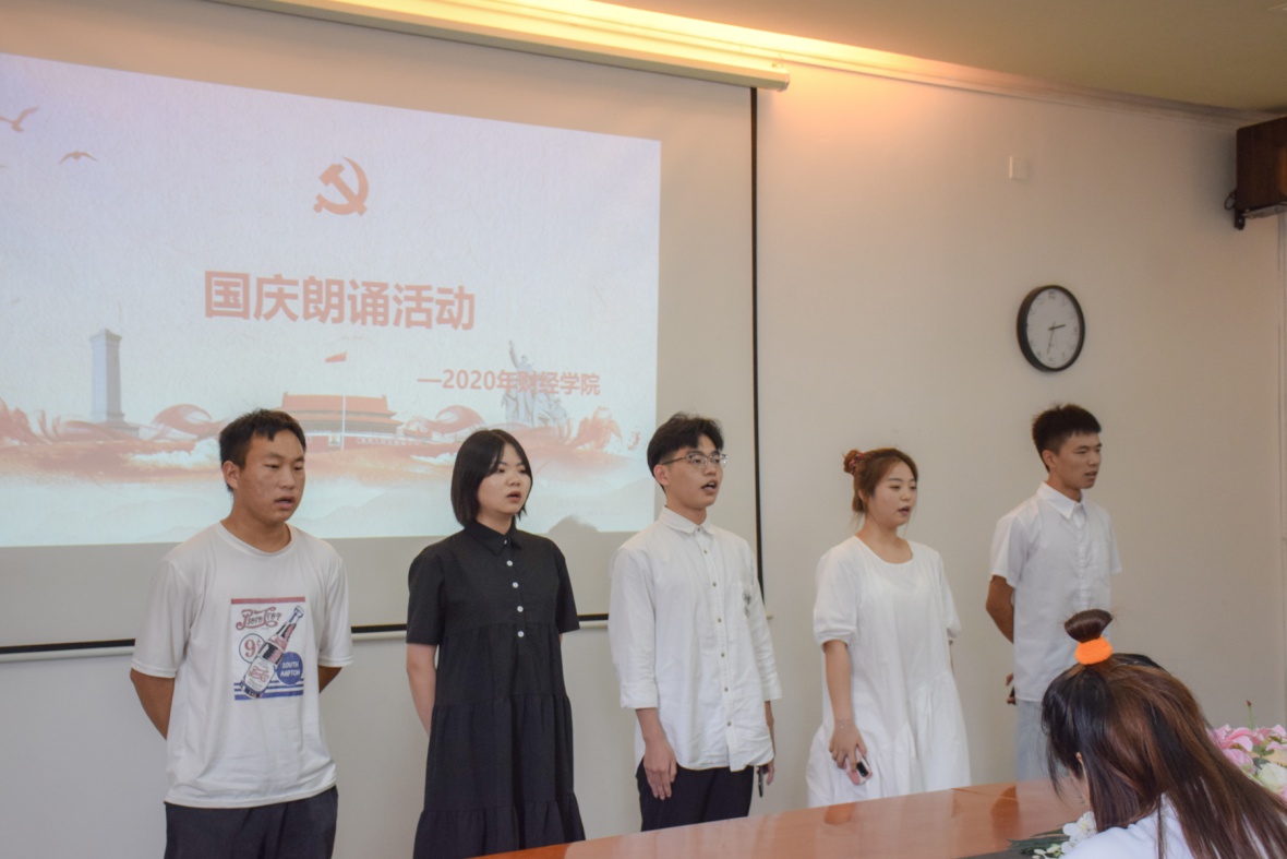 (财经团委 讯)2020年10月3日14:00,为庆祝中华人民共和国成立71周年,必赢集团bwin在社科楼四楼会议室举行了“新时代接班人传颂祖国富强”国庆诗歌朗诵活动。
