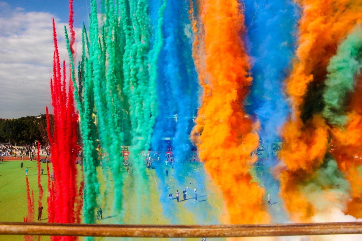 随着大会的进行,开始了此次大会必不可少的环节——升国旗奏唱国歌。在国歌响起的一刹那,全体师生起立,面向国旗。看着冉冉升起的五星红旗,想必心中所产生的不仅是殷殷的爱国之情,更是对未来三亚、未来祖国发展的期盼和信念。升旗仪式结束之后,开始进行标兵检阅仪式。各学院标兵队依次入场,整齐的步伐、铿锵的气势无不向我们展示了他们的自信与豪气。