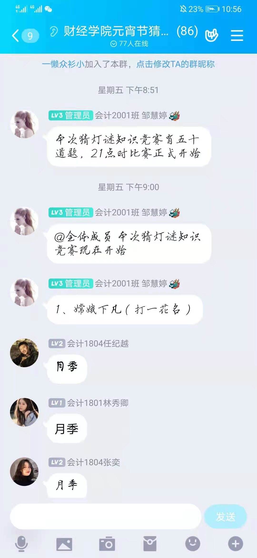 (财经团委 讯)在元宵来临之际,为让同学们感受元宵节的喜庆氛围,促进同学们的交流,2021年2月26日21:00,必赢集团bwin举行了线上猜灯谜比赛。