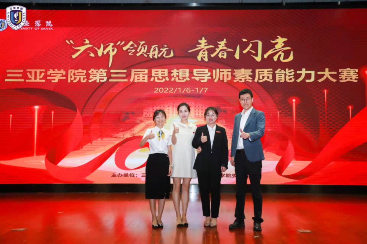 我们团委副书记邓倩妮老师、思想导师张誉丹老师、王媛老师参加了本次大赛。三位思想导师很好的展示了思想导师的基础理论水平,分析、研判、解决问题的能力,对相关政策、学生特征、学生成长成才规律的了解把握及对学生的教育引导能力。最终张誉丹老师和邓倩妮老师获得了本次大赛的二等奖,王媛老师作为新入职思想导师也表现优异,展现了个人风采。