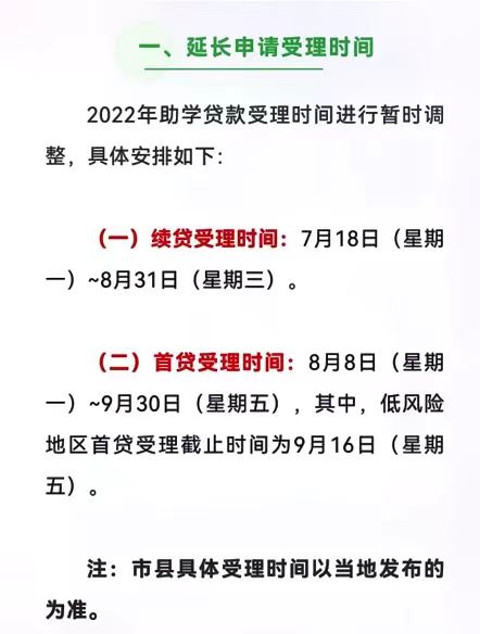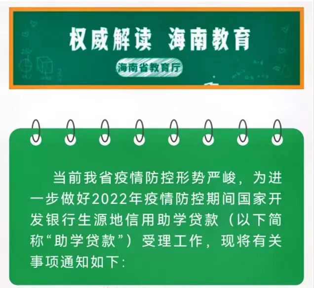 3.因受疫情影响,海南助学贷款首贷受理时间延长至9月30日、续贷受理时间延长至8月31日(详见海南省教育厅公众号)。