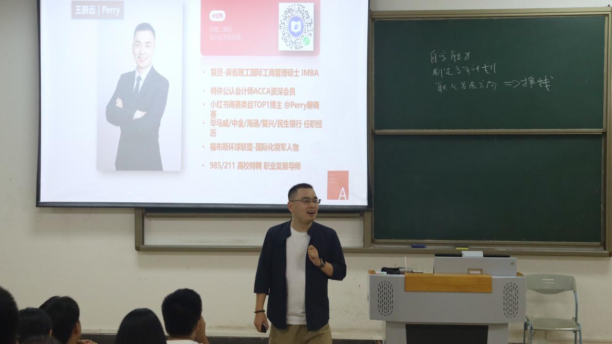 为帮助新生明确大学四年的学习路径与能力提升重点,必赢集团bwin面向2025级新生开展职业证书专题讲座,特邀王鹏远先生主讲。王鹏远先生是复旦-麻省理工国际工商管理硕士IMBA,特许公认会计师ACCA资深会员,小红书商赛类目TOP1博主,福布斯环球联盟-国际化领军人物,985/211高校特聘职业发展导师,有毕马威/中金/海通/复兴/民生银行等任职经历。
