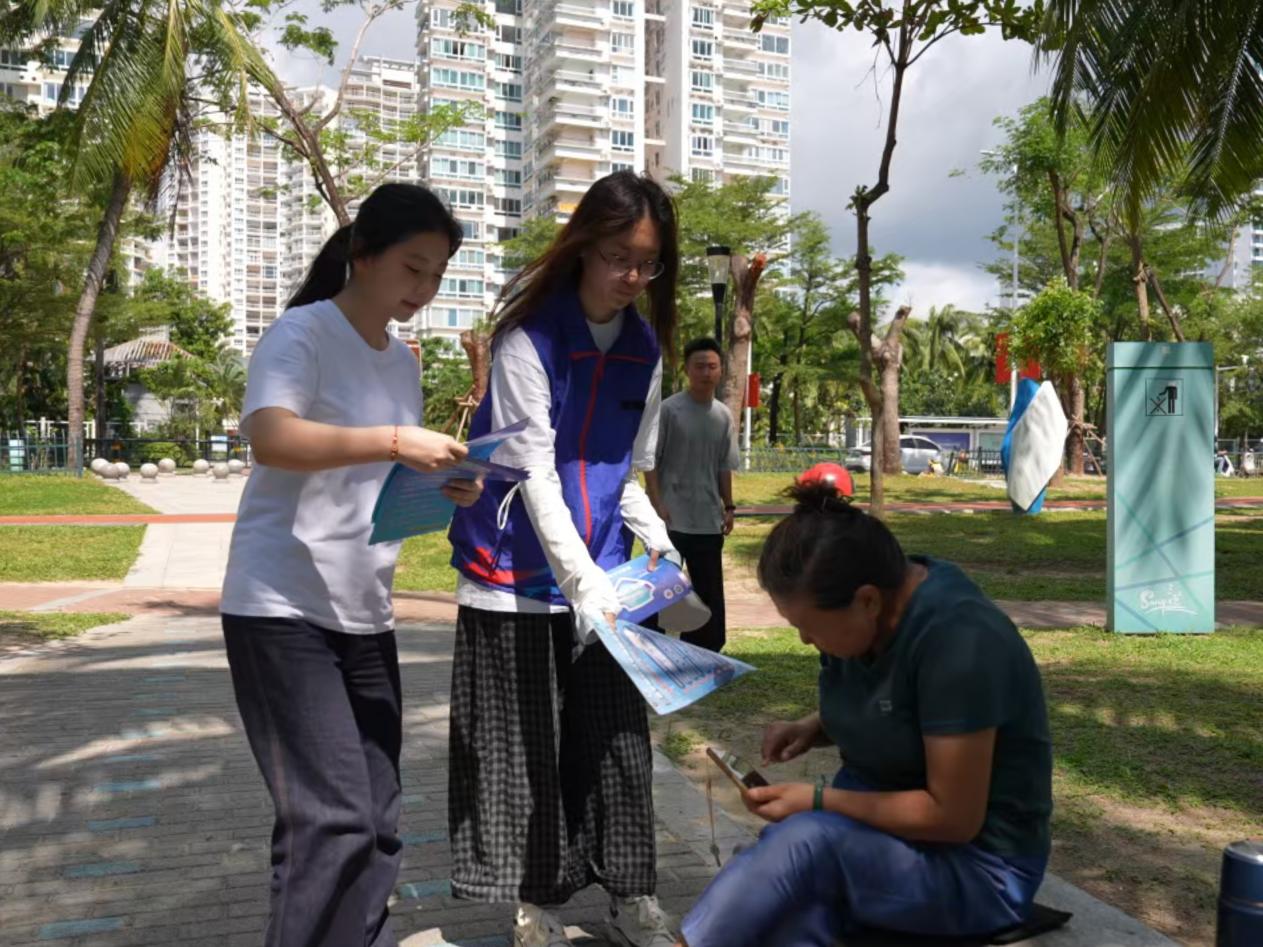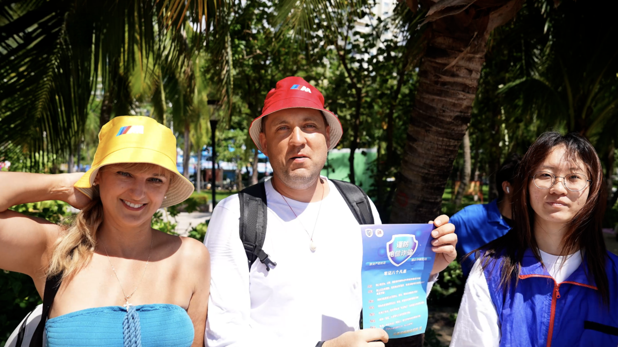 宣传队成员郭研龙表示:“椰梦长廊作为三亚标志性景区,游客来自五湖四海,我们希望通过精准科普,让大家在享受海滨美景的同时,也能筑牢金融安全意识。”